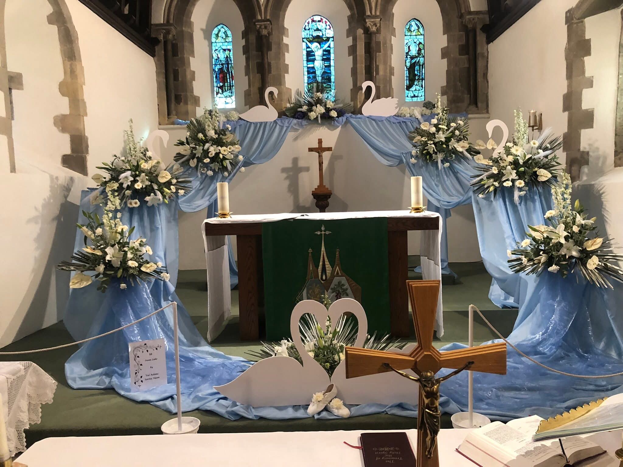During September 2025, St Marys church and the East Preston Floral Club hosted a display a floral arrangement made by the members,