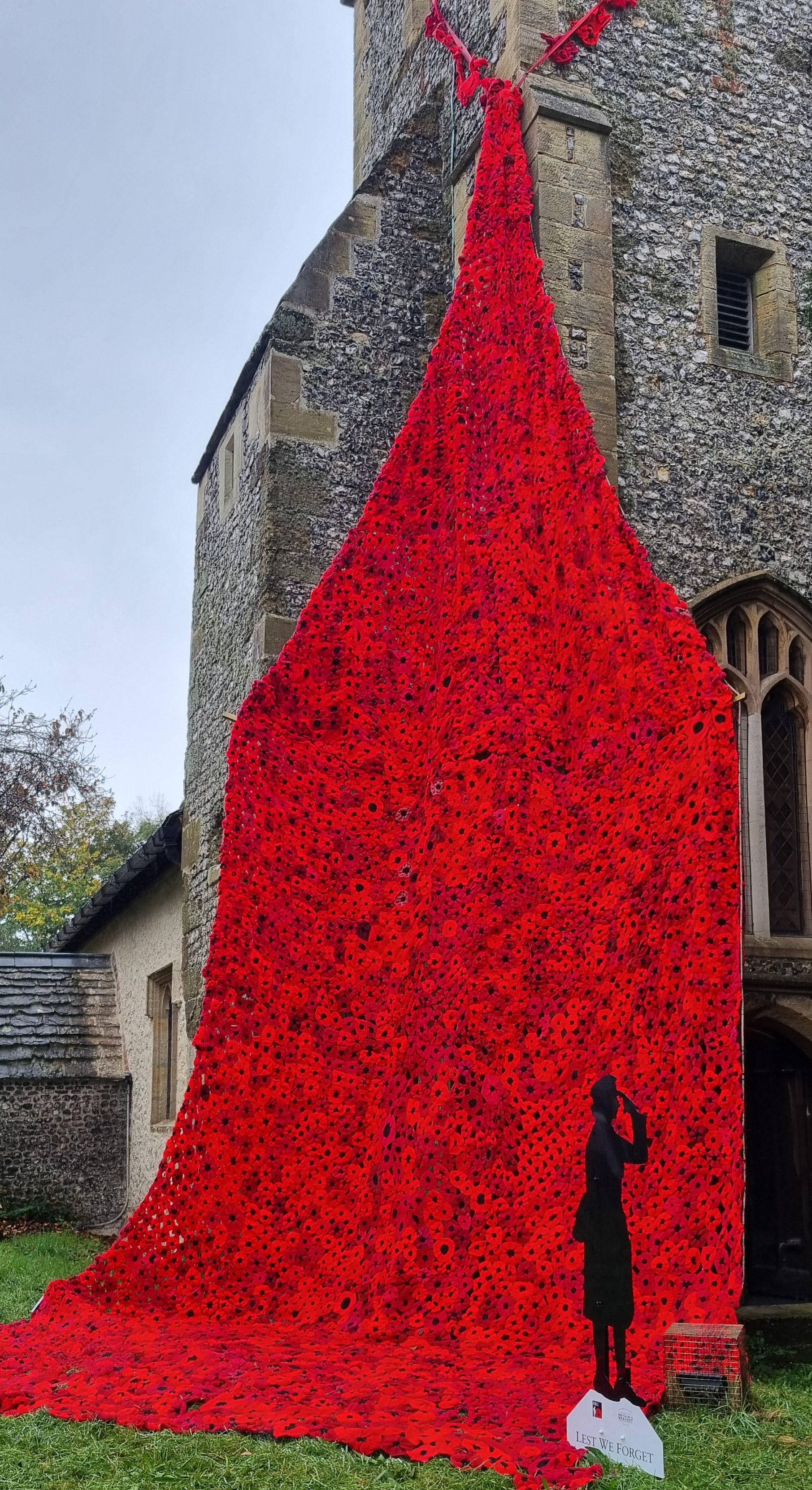 In 2024, East Preston Yarn bombers requested the public to knit or crochet red poppies and the result was this.